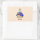 Adesivo Retangular Nono aniversário, 9 no Bolo Azul Doce