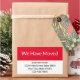 Este brilhante anúncio em movimento vermelho e branco como dois campos. O campo vermelho diz: "Mudámos". Use o campo branco para personalizar o decalque da janela com o nome, endereço e número de telefone da sua empresa.
