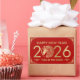 2026 Ano do Cavalo de Fogo, vermelho e adesivo de ouro.