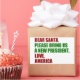 Caros Papais noeis, por favor traga-nos um novo presidente. Amor, América. Engraçado adesivo político de Natal para os americanos prontos para as eleições de 2024. Tampas de humor de férias.