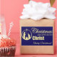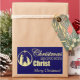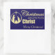 A característica deste adesivo temido pela fé é um simples dentro de cena da natividade da silhueta com um círculo com a Estrela de Belém acima, e o texto estilizado que diz "O Natal Começa com o Cristo". Tudo é ouro brilhante, e colocado sobre fundo azul escuro.