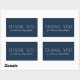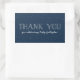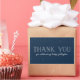 Este adesivo azul marinho apresenta um quadro de estrelas ou neve junto com um tratamento estilizado do tipo "obrigado você" e um lugar para texto personalizado personalizado