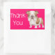 Adesivo Retangular Obrigado Inglês Buldogue Puppy Dog Pink Stickers