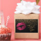 Adesivo Retangular Obrigado - Lábios cor-de-rosa com Confetti Dourado