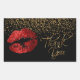 Adesivo Retangular Obrigado - Lábios vermelhos com Confetti Dourado