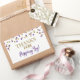 Obrigados para saltar pelo adesivo de etiqueta favorita com o dourado e o padrão de brilho roxo confetti. favores perfeitos de pipoca para casamento ou chá de fraldas.