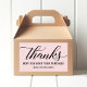 Os adesivos agradecidos apresentam o texto moderno do script preto "obrigados" e o texto personalizado elegante que pode ser personalizado com uma mensagem personalizada e um nome de armazenamento. Perfeito para aumentar suas vendas. A cor de fundo rosa do balé pastel pode ser personalizada.