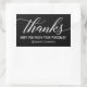Os adesivos "obrigados" de scripts brancos modernos e o texto personalizado elegante que pode ser personalizado com uma mensagem personalizada e um nome de armazenamento. Perfeito para aumentar suas vendas. A cor preta do plano de fundo pode ser personalizada.