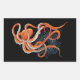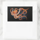 Um polvo laranja contra um pano de fundo de preto. Tentáculos de polvo dentro e em volta de bolhas e uma mandala azul