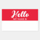 Sinta-se à vontade para personalizar e personalizar este adesivo retangular Hello My Name Is Red Modern Minimalist Script. As opções de edição estão disponíveis.