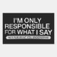 Adesivo Retangular Only Responsible for What I Say Sarcastic Humor