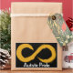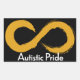 Texto do Orgulho Autista com o logotipo do autismo aceitando o ouro infinito.
