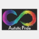 Texto do Orgulho Autista com o logotipo infinito da neurodiversidade arco-íris.