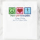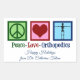 Paz Amor Ortopedia de presentes de Natal. Um adesivo personalizado fofo para um cirurgião ortopédico ou ortopedista que trabalha com o sistema musculosquelético e doentes que necessitam de cirurgia ao ombro e à anca. Um sinal de paz, coração, e um esqueleto.