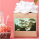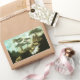 presentes divertidos e legal, impressões de arte e produtos com uma pintura de paisagem fantasiosa num pequeno homem sentado num crânio gigante e ignorando um outro mundo exótico com muitas árvores, arbustos, montanhas e um pequeno rio saindo da boca do crânio do gigante. exclusivamente pela arte franca do glerum.