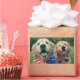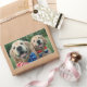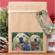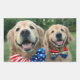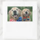 Feliz 4 de julho, EUA! Mostre seu espírito patriótico com esses bonitos adesivos do recuperador de ouros! Design apresenta uma fotografia de dois cães celebrando o Dia da Independência com gravatas de arco vermelho, branco e azul.