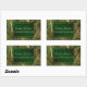 Adesivo Retangular Padrão Elegante Verde de Folhas Douradas