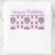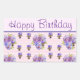 Adesivo Retangular Pansy Flower Pink Stripe floral Feliz Aniversário