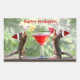 Dois Papais noeis esquilos bebendo um coquetel vermelho de um grande copo de martini através de palhetas de guarda-chuva. Os esquilos estão vestindo chapéus de Papai Noel e de pé sobre as patas traseiras com galhos de árvores verdes ao redor e ao fundo. Esta é uma foto original de esquilo de Natal para ajudar a tornar suas férias divertidas!