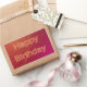 Letras de aniversário felizes brilhantes num lindo fundo rosa/vermelho com estrelas e listras leves.