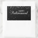 Adesivo Retangular Parabéns de aposentadoria pretos com faísca pratea