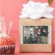 Um adesivo retangular para combinar o nosso cartão de saudação de "Coro de Natal" com uma imagem vintage dos anos 40 de um coro infantil e uma pequena partitura para a música "Home Sweet Home". Há vegetação natalícia, flores, e uma lira com um grande arco vermelho. O sentimento diz "Feliz Natal e feliz ano novo". Consulte cartão de saudação correspondente, saudação de quebra-cabeça e etiqueta de presente. Veja toda a coleção do Holiday Sticker nos CONVITES | Seção Stickers & Labels