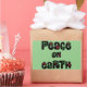 Gráfico temático de Natal bonito e significativo com sinais de paz vermelhos e verdes acentuados em cada carta. Desejando paz na Terra... no Natal e no dia a dia.