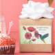Um beija-flor está se alimentando de uma flor vermelha do cosmos. Esta imagem de aquarela oferece alegria e paz enquanto você deixa alguém saber que você está pensando neles e agradecendo a Deus por eles.