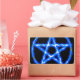 Queimando com uma chama etérea azul espiritual, este pentáculo é bastante surpreendente na sua visibilidade. Ele se destaca fortemente contra o fundo preto circular atrás dele. Simples, mas eficaz.
