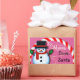 Adesivo Retangular Personalizado do Papai noel Snowman Pink Natal