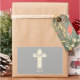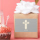 Esta cruz de creme destaca-se contra a cinza de prata. A design de pontos na cruz e no fundo criam um olhar de bebê malhado e bonito. Esta dádiva de dedicação a bebês, lembrança, doação ou festa essencial é perfeita para felicitar os pais pela dedicação sagrada do seu bebê.