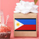 フィリピン共和国の国旗。 白は平等と友愛を、青は平和、真実と正義を、赤は勇気と愛国心を象徴し、黄色い太陽は自由を意味している。