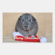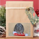 Foto doce de uma porquinha-pintada bonitinha segurando um chapéu de Papai Noel com desejos de um "Feliz Natal", que aparece neste adesivo de Natal. Use aquela correspondência especial, decoração ou artesanato!