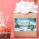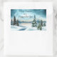 Adesivo Retangular Pinhas cobertas de neve perto de um lago