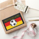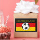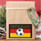 A bandeira da Alemanha, tricolor, mostrando as cores nacionais da Alemanha: preto, vermelho e ouro. No meio, há uma imagem no estilo do desenho / escribble de uma bola / futebol preto e branco. O texto diz "ALEMANHA".