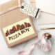 As peças de pizza tentam as papilas gustativas com anéis de pepperoni, salame, queijo e outras passagens deliciosas. Uma ideia de presente de excelente para amigos comidas rápidos.