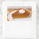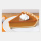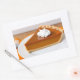 Um pedaço de torta de abóbora tocado com creme chicoteado em uma placa.