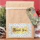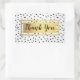 Adesivo Obrigado com padrão de pontos polka pretos modernos em um fundo branco prateado.