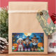 Uma cena divertida de Halloween, com um cachorrinho malicioso a espreitar-se de uma abóbora esculpida, rodeada por vibrações de outono assustadoras. Com um charme viscoso e cores de outono, é o toque perfeito de humor para a estação.