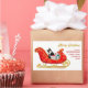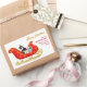 Nestes adesivos decorativos de Férias, um gato preto e branco bonitinho senta-se num bonito trenó decorativo vermelho e dourado. Ao lado do gato estão pacotes de presentes amarrados com arcos coloridos. O texto dourado à direita diz "MERRY CHRISTMAS" e o texto personalizado está vermelho. Perfeito para sua correspondência de Natal ou pacotes de presentes! Há muitas outras imagens e produtos para gatos E cães na Dog Village.