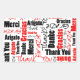Adesivo Retangular Preto e Vermelho, Obrigado, Nuvem de Palavras