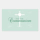Adesivo Retangular Primeira Comunhão Sagrada, Script em Verde Suave