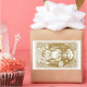 Um único padeiro com tema "Tarot", adesivo de cozinha de pastelaria ou etiqueta de produto, com um esqueleto com bolo e uísque. Um estilo único com um padeiro esqueleto no chapéu de chef. design Dourado com tipo ouro.