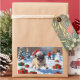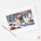 Adesivo Retangular Pug correndo na neve com chapéu de Natal