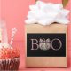 Boo! Abóbora de pele cobra moderna, branca, com adesivos pretos de Halloween, arco cor-de-rosa. Feliz Dia das Bruxas. Coloque suas bolsas doces, ou outros itens.