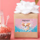 Uma ilustração adorável de cão papillon em rosa e azul, apresentando um filhote de papel divertido a piscar em pedaços de diversão. Personalize com um nome.