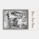 Este adesivo retangular é branco com uma ilustração a preto e branco de uma pequena capota vermelha de equitação falando com o lobo na floresta em um quadro preto ornamentado. Personalize seu texto com o modelo.