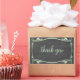 Chalkboard elegante e moderna Flourish Obrigado Stickers mostrando o fundo do quadro e uma espiral de rico e deco de folha em verde-menta. Fácil de personalizar, basta adicionar o texto personalizado de sua escolha. Clique em "Personalizar" para encontrar mais opções de personalização.