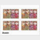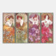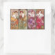 Quatro lindas pinturas Mucha cada uma com cor floral diferente. Laranja, roxo, vermelho e verde