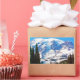 Uma vista do Monte Rainier através de uma quebra num grupo de pinheiros.